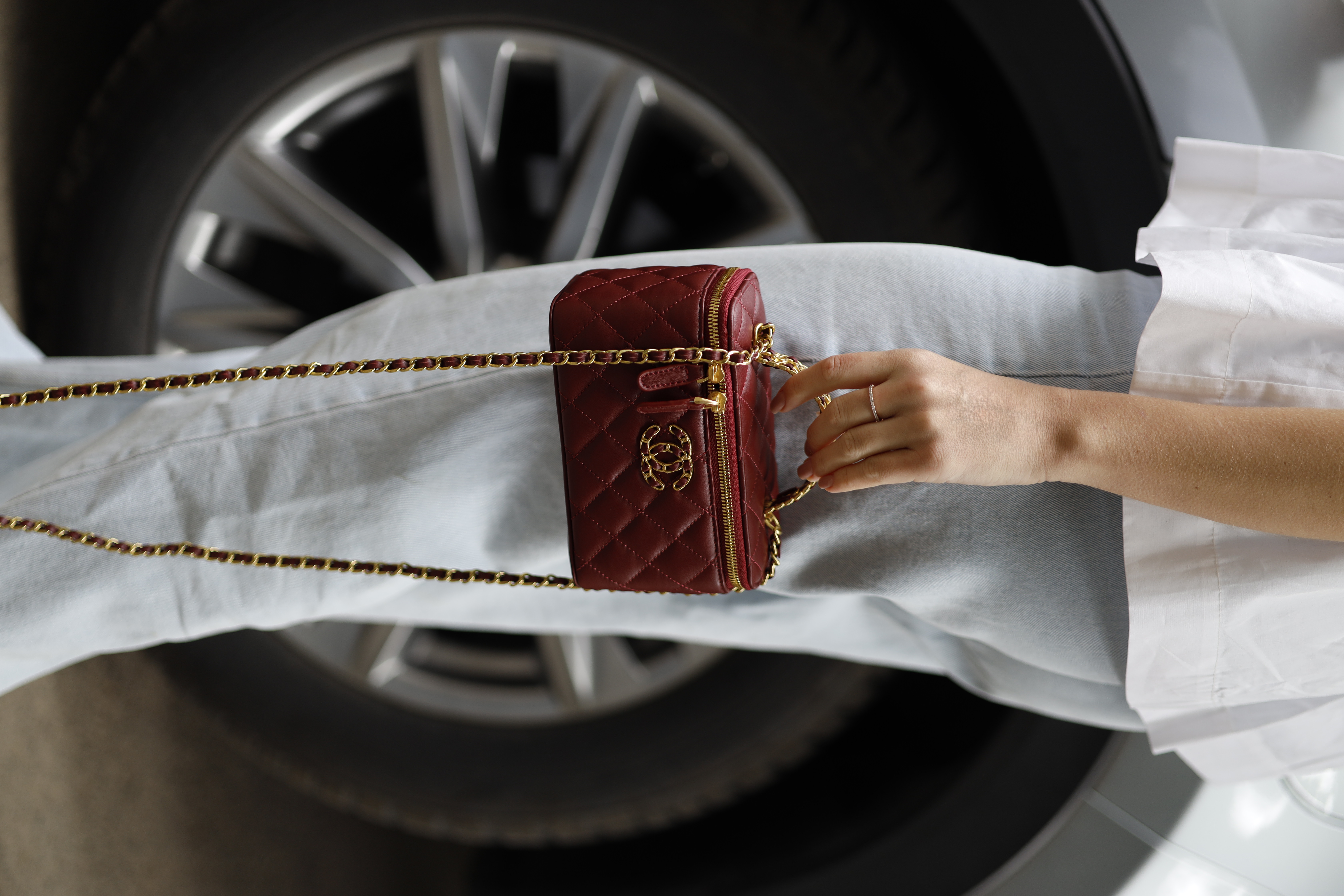 Chanel Classic Burgundy Lambskin Pearl Crush Vanity Bag Gold